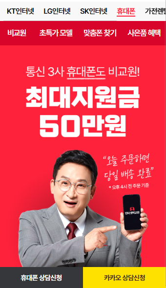 ºñ±³¿øÀº ÀÎÅÍ³Ý °¡ÀÔ»Ó¸¸ ¾Æ´Ï¶ó ÈÞ´ëÆù ·»Å» ¼ºñ½ºµµ ÇÔ²² ÁøÇàÇϰí ÀÖ¾î¿ä. ºñ±³¿øÀ¸·Î ÈÞ´ëÆù ·»Å»ÇϽøé ÃÖ´ë 50¸¸ ¿ø ÇýÅÃÀ» Á¦°øÇϰí ÀÖ½À´Ï´Ù. Ȥ½Ã ÈÞ´ëÆù ´Ü¸»±â ±¸¸Å°¡ ¾Æ´Ï¶ó Åë½Å»ç¸¸ º¯°æÇÏ°í ½ÍÀ¸¼Åµµ OK! Åë½Å»ç(À¯½É) º¯°æ ½Ã ÃÖ´ë 30¸¸ ¿øÀ» µå¸³´Ï´Ù. ÀÌ¿ÕÀ̸é ÃֽůùÀ¸·Î ¹Ù²Ù½Ã°í 50¸¸ ¿øµµ ´Ù~ ì°Ü ¹ÞÀ¸½Ã´Â °Ô ´õ ÁÁ°ÚÁÒ?